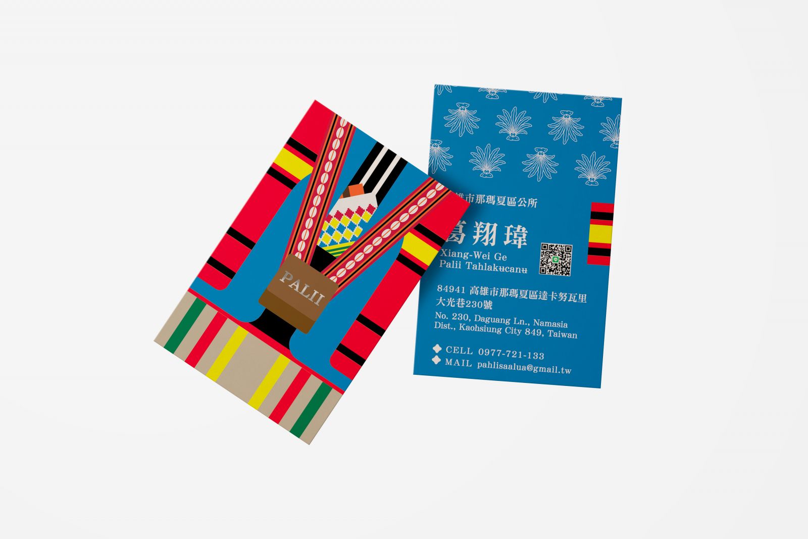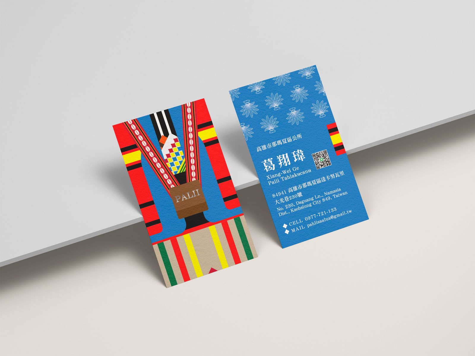名片正面從拉阿魯哇族的族服開始。
