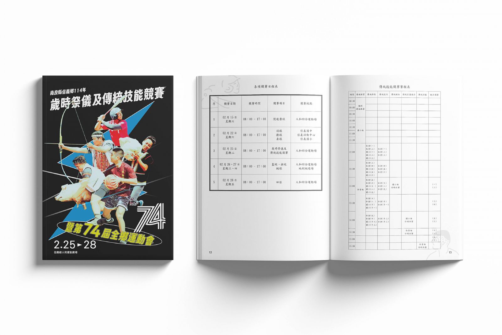This marks the first time that Huan Dao Zou Bu Luo has designed the visual identity for the Xinyi Township Sports Games, making this hometown project especially meaningful. In the early proposal phase, we explored various design styles, ultimately centering the concept around highlighting the athletic spirit of the Bunun people.