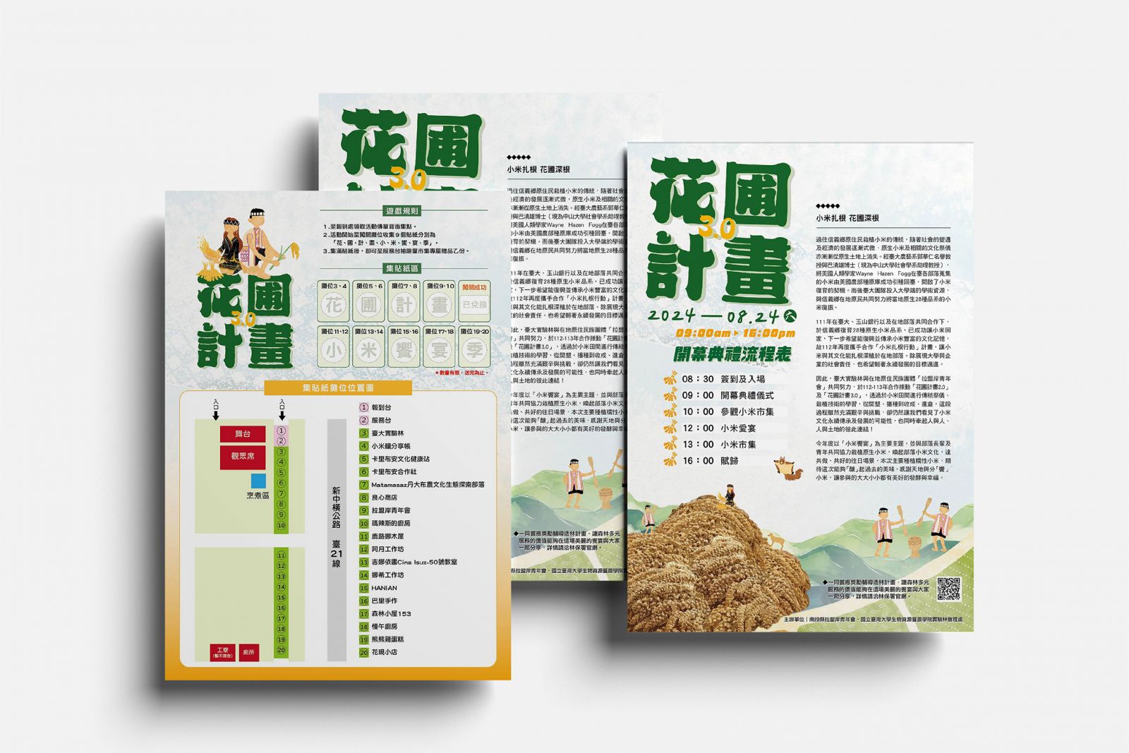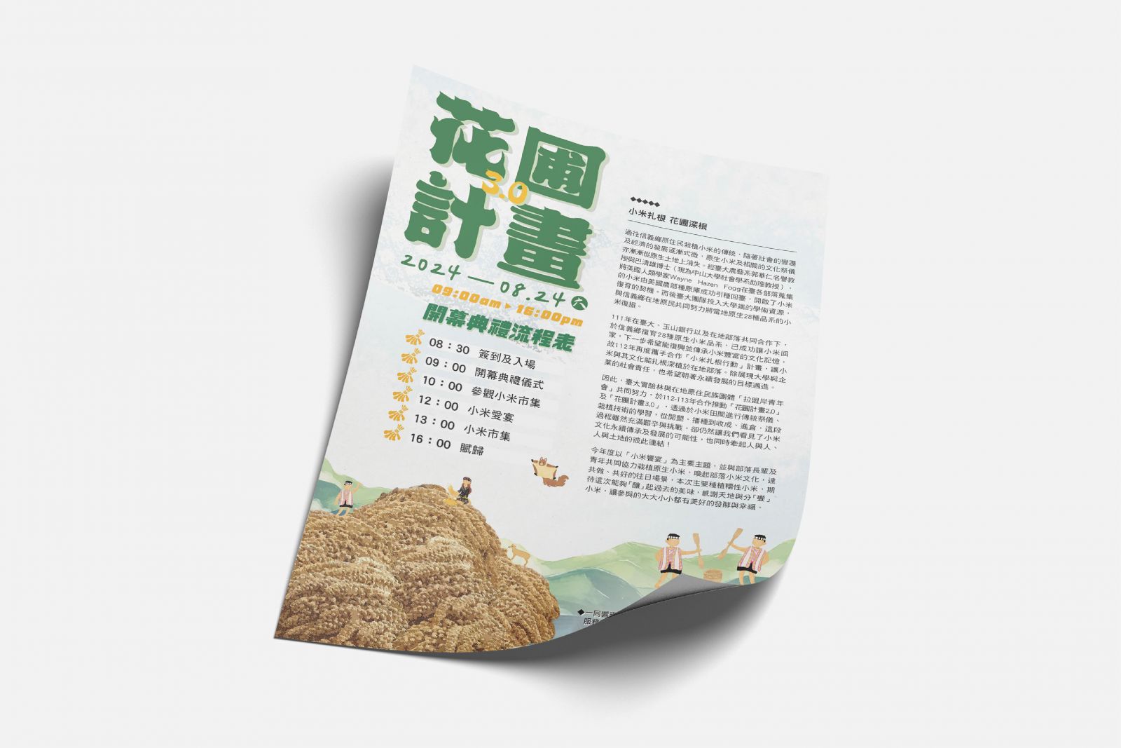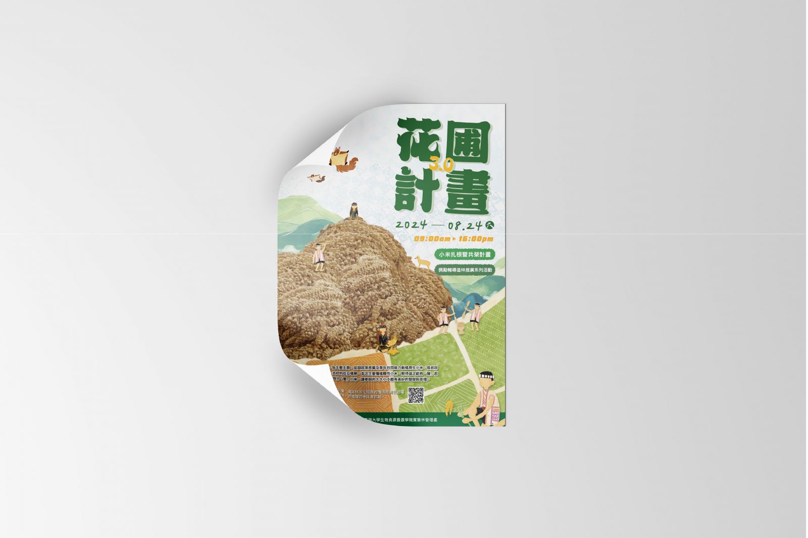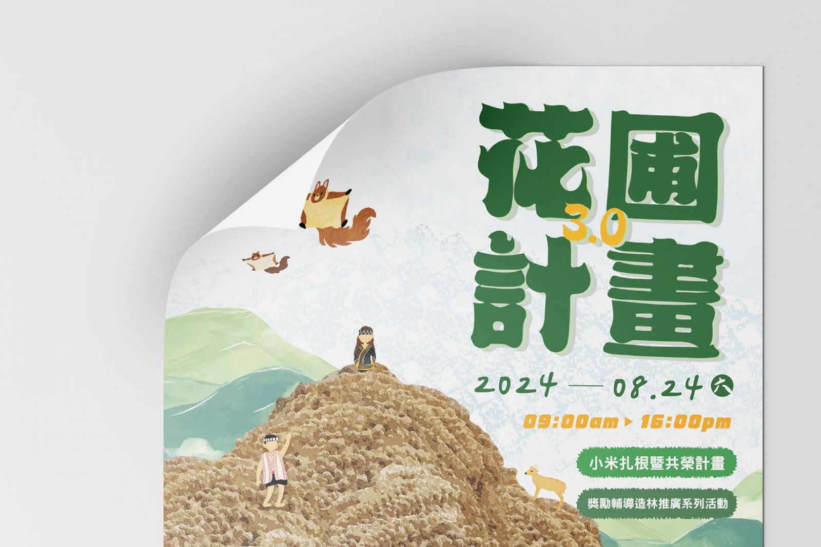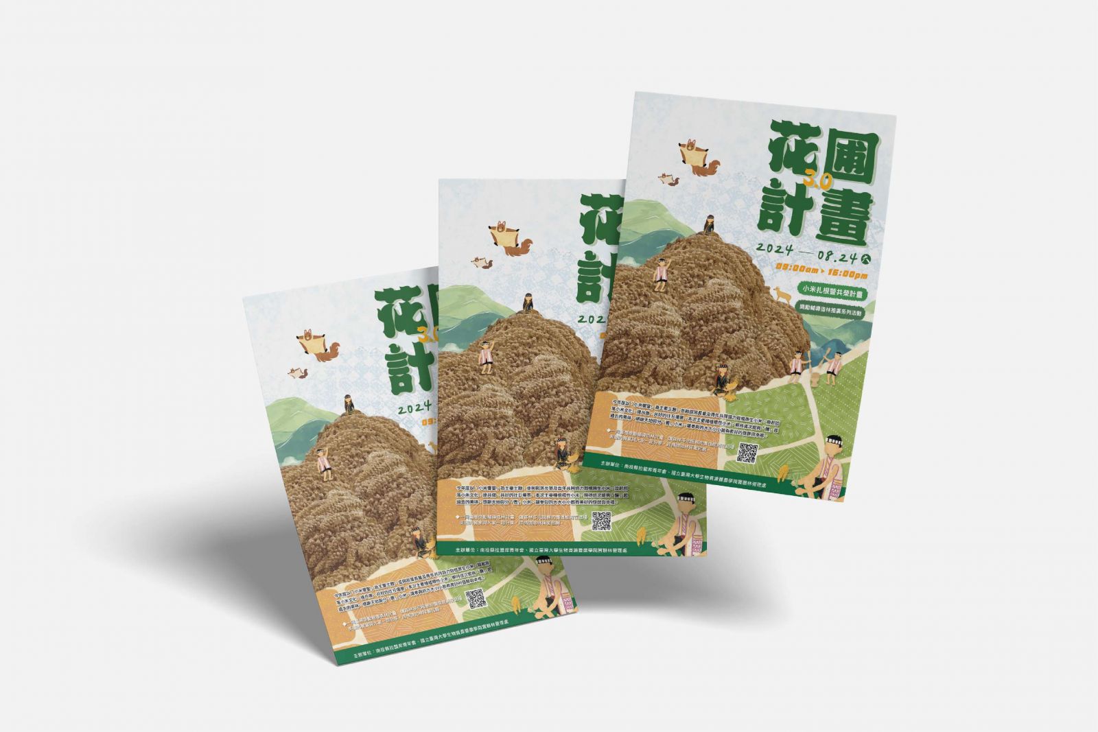 The mountain of millet in the image represents the fruits of their labor; the busy figures in the fields reflect the spirit of the community; and the flying squirrels and Formosan muntjacs depict the daily life of living in harmony with nature.The illustration style continues to evoke a hand-drawn warmth, allowing viewers to feel both the temperature and the stories behind the visuals.
